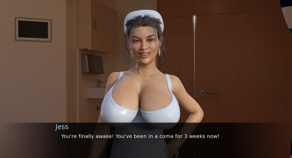 After a short stint in a coma you, our degenerate main character, wake up in a hospital run by some big titty nurses.